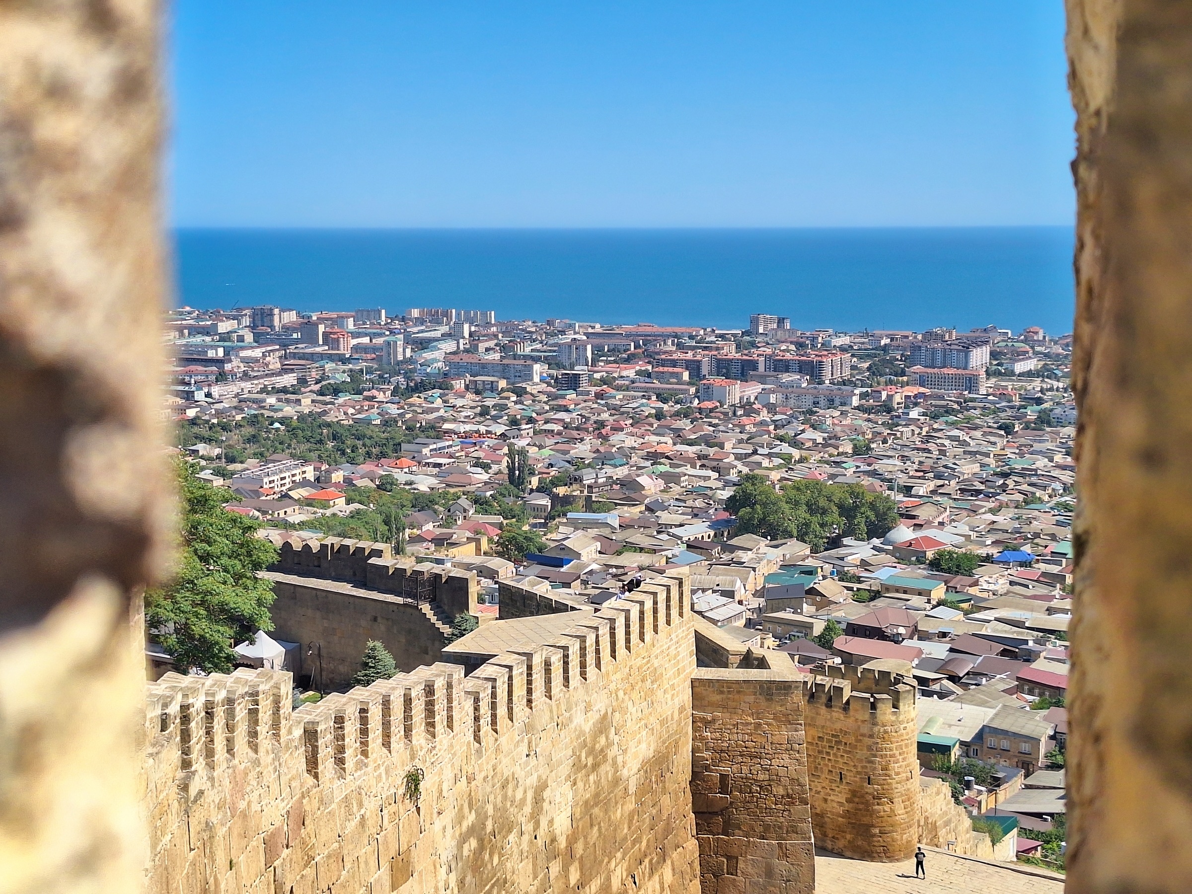 A stone staircase leads from the citadel to the northern fortress wall. Midway down, there is a viewpoint that offers a stunning panorama of Naryn-Kala, the city, and the sea. It’s especially beautiful at sunrise and sunset.