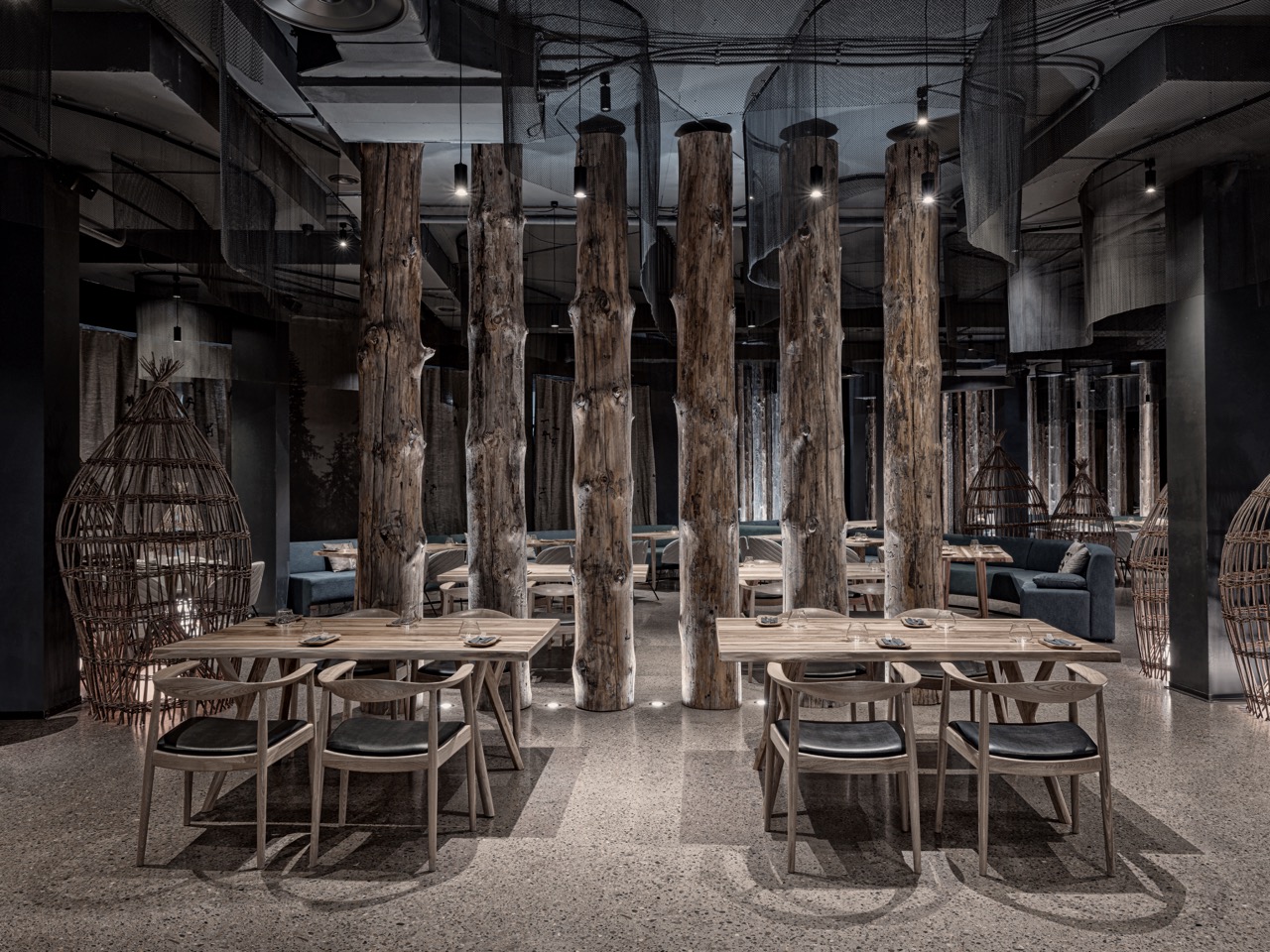 Modern classics of Siberian cuisine. Based on local gastronomic traditions combining Russian cuisine, indigenous peoples' diets and Asian neighbors' traditions. Special mention goes to the "Rituals" tasting set dedicated to ceremonies of Yenisei Siberia's indigenous peoples. The set includes eight dishes symbolizing different rituals, including an edible fly agaric sandwich, bird-shaped pie, ram's cheeks and thymus gland. Note that the set must be ordered at least 24 hours in advance.